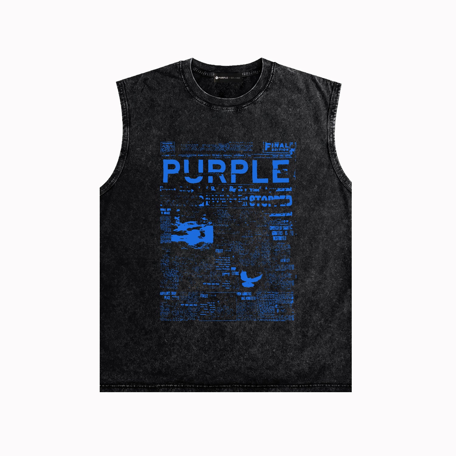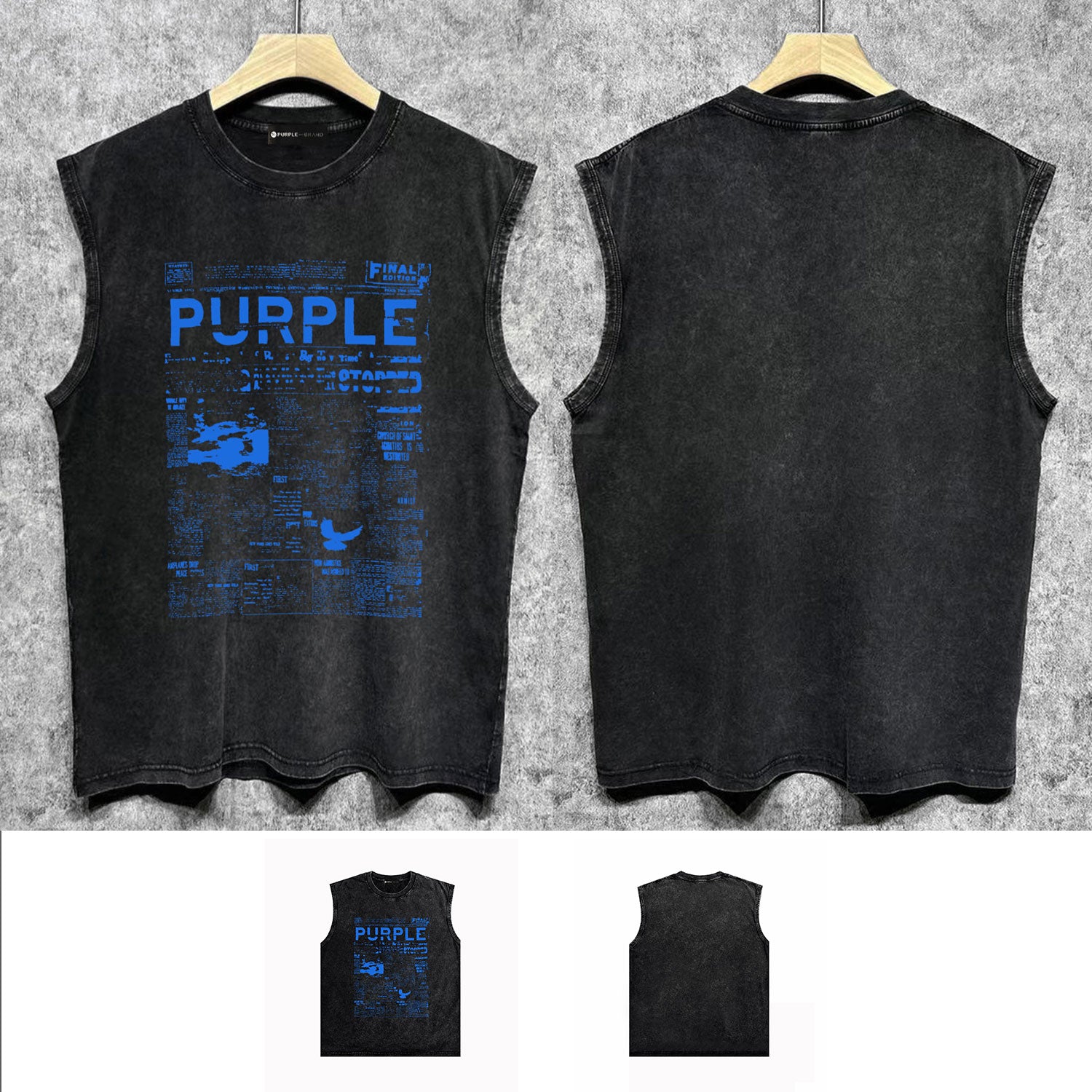 PURPLE-Purple Make Old Sleeveless T-Shirt ZJBPUR058#